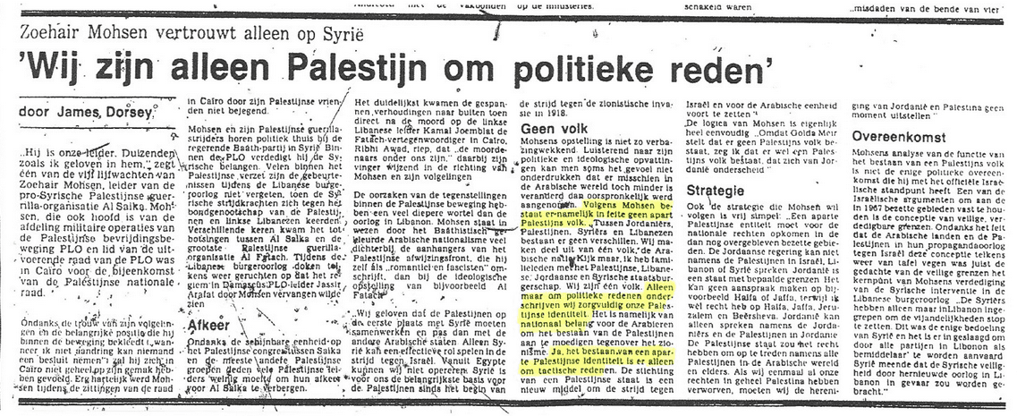 Mohsen’s logic is actually very simple: “Because Golda Meir says there is no Palestinian people, I say that there is indeed a Palestinian people, distinct from Jordan.”